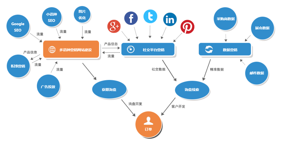 外貿營銷顧問! 高品質外貿網站建設 + 外貿SEO和Google優化 + 海外社媒營銷 = 外貿企業借力 “互聯網+外貿” 走出國門!客戶集中上海、深圳、廣州、北京、寧波、蘇州、青島、佛山、東莞、金華等地